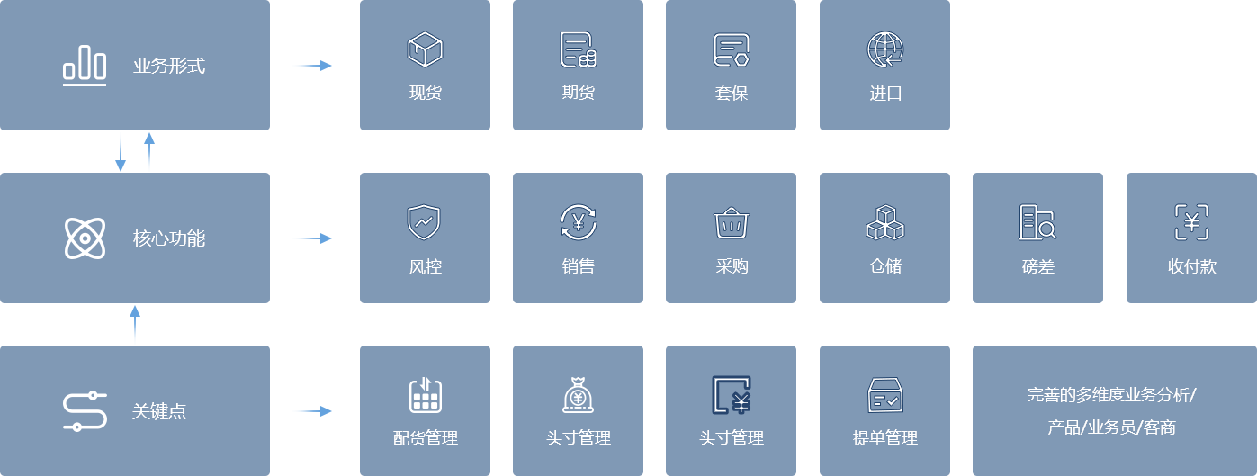 深层次的授信、物权等风险控制体系,针对贸易过程中的资金流、物流、商流利用信息技术提供事